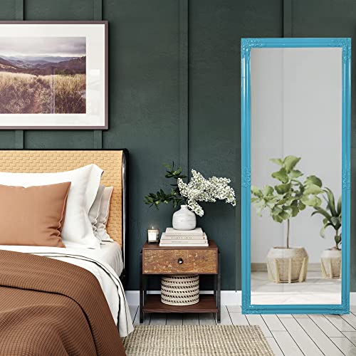 Biscottini Specchio da parete lungo Blu 180x4x72 cm - Specchio da terra e parete cornice in legno - Specchio camera da letto e soggiorno - Specchio lungo da parete - Specchiera camera da letto