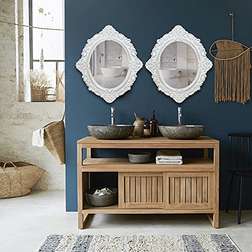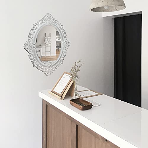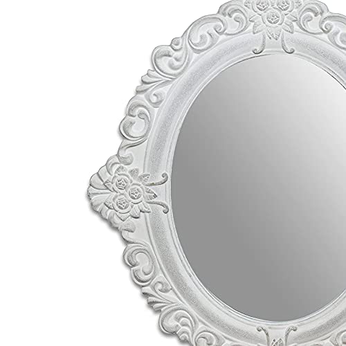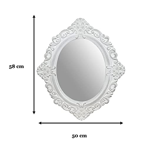 Biscottini Specchio da parete 58x50x2 cm | Specchio shabby chic con cornice bianca anticata | Specchio bagno, camera e soggiorno | Specchio vintage