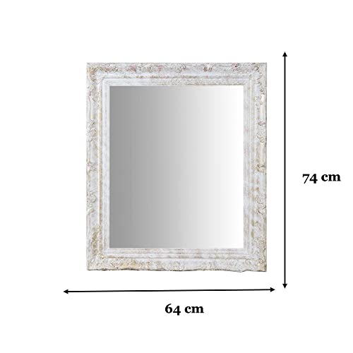Biscottini Specchio vintage da parete 74x64x4 cm | Specchio shabby bianco argento anticato | Specchiera bagno a muro | Specchio da parete