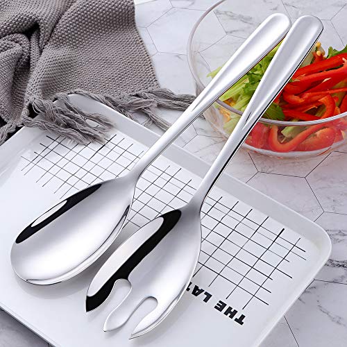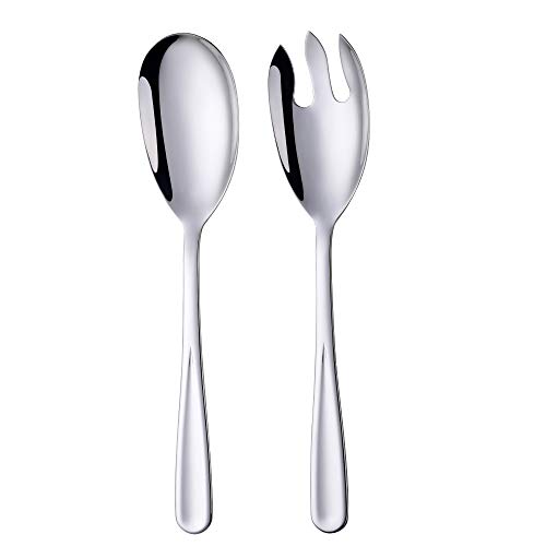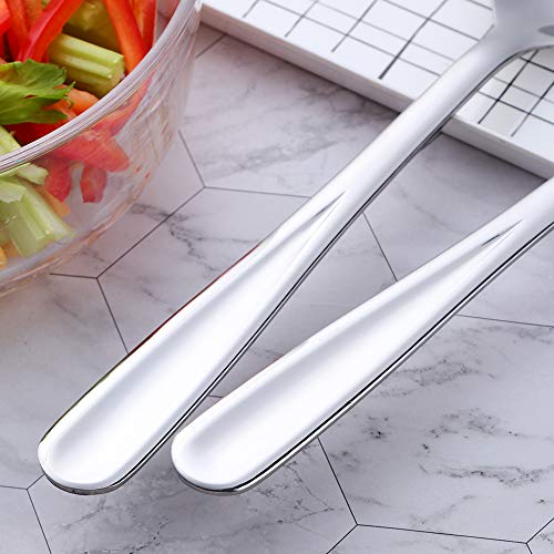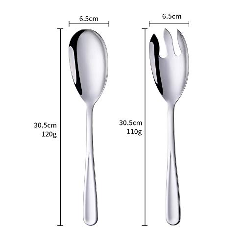 Bisda Set di 2 cucchiaini da insalata e forchetta in acciaio inox, colore: argento grande cucchiaio da portata e forchetta 30,5 cm di lunghezza