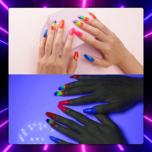 BISHENGYF 10ML Semipermanente Fluorescente Neon Arancione Rosa Blu Giallo Verde Viola Smalto Fluorescente Neon UV Gel Smalto Semipermanente Gel Unghie Primavera Estate Kit 6 PCS