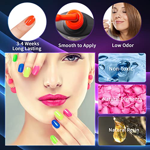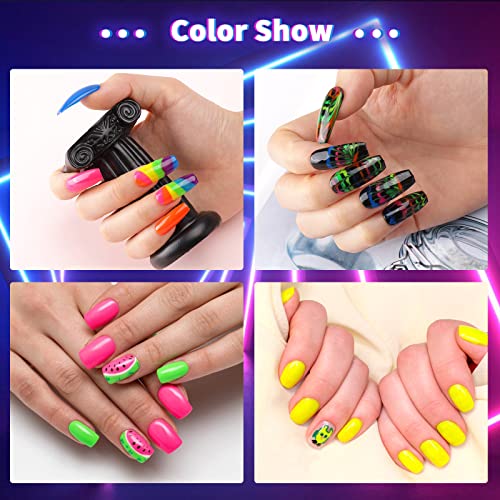 【Crea uno stile nail art personalizzato】 Smalti semipermanenti kit includono 6 flaconi di neon colori gel unghie altamente pigmentato da 10 ml. Arancione rosa blu giallo verde viola. I colori al neon sono colorati e luminosi, di grande impatto visivo. Ti farà distinguere dalla massa e renderà la vita ordinaria più interessante.