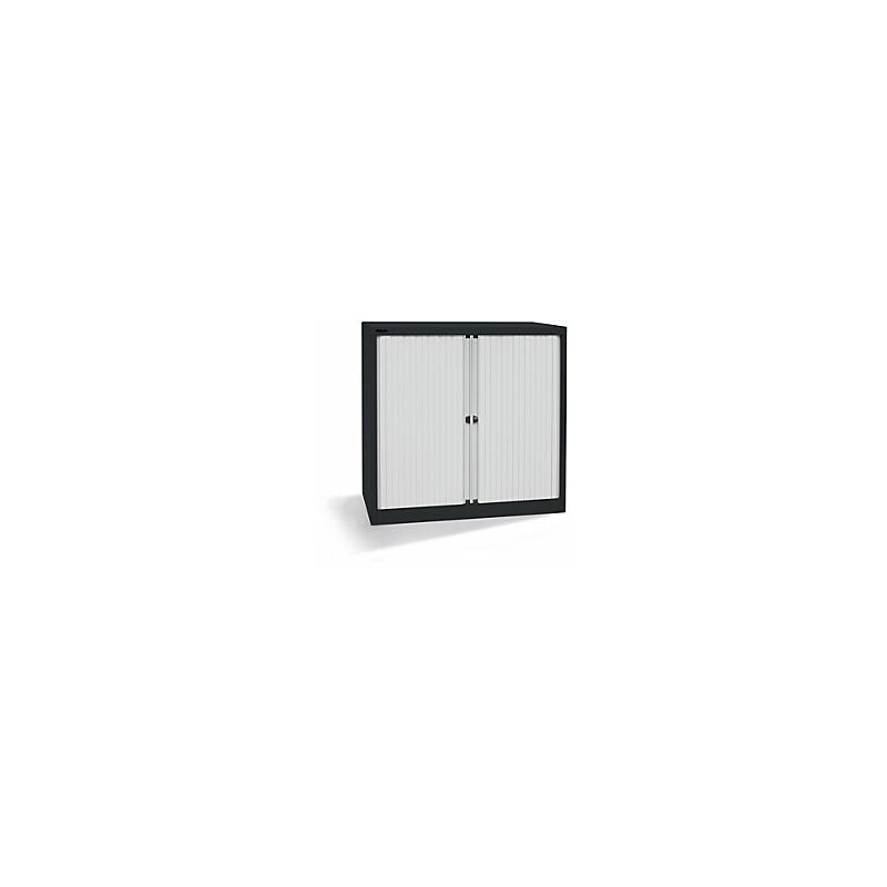 Armadio a serranda Euro, larghezza 1000 mm, 2 ripiani, nero notte / grigio chiaro. Fornitura = montato. Altezza = 1030 mm. Larghezza = 1000 mm. Profondità = 430 mm. Colore corpo = nero notte. Materiale corpo = lamiera d'acciaio, verniciata a polvere. Colore serranda = grigio chiaro. Caratteristiche = con serratura. Serratura = serratura a cilindro con 2 chiavi. Numero file raccoglitori = 2.5 pz. Materiale serranda = plastica. Dotazione interna = 2 ripiani. Numero ripiani = 2 pz. Portata per ripiano = 55 kg. Colore ripiani = nero notte. Tipo di porta = serranda orizzontale. Passo di regolazione altezza ripiani = 25 mm. Larghezza interna = 846 mm. Altezza interna = 900 mm. Profondità interna = 395 mm. Spessore ripiani = 23 mm. Spessore del corpo = 0.8 mm. Completi di ripiani in acciaio. Con serratura. Le serrande scompaiono completamente nel corpo. Maniglia a listello nel colore della serranda. Corpo in lamiera d'acciaio spessore 0,8 mm con verniciatura a polvere strutturata e piedini ad