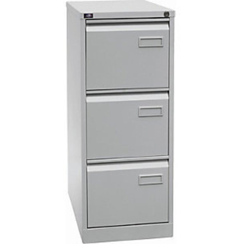 Classificatore per cartelle sospese LIGHT, monocorsia, 3 cassetti, UNI A4, grigio chiaro. Fornitura = montato. Altezza = 1016 mm. Larghezza = 413 mm. Profondità = 622 mm. Tipo di prodotto = classificatori per cartelle sospese. Materiale = lamiera d'acciaio, laccata. Colore corpo = grigio chiaro. Colore frontalino = grigio chiaro. Numero cassetti per cartelle sospese = 3 pz. Versione cassetto per cartelle sospese = 1 corsia. Per carta di formato = UNI A4. Cassetto estraibile per cartelle sospese = 100%. Versione cassetti = con guide telescopiche su cuscinetti a sfera. Portata per cassetto = 30 kg. Altezza cassetti = 300 mm. Dimensioni interne cassetti = 255x330x535 mm. Serratura = chiusura centralizzata, con serrature diverse. Caratteristiche = sicure antiribaltamento, con serratura. Versione impugnature = listelli di presa. Spessore del corpo = 0.70 mm. Struttura saldata. Resistente verniciatura strutturata. Ripiano a vasca chiuso. Guide telescopiche scorrevoli con cuscinetti a sfera.