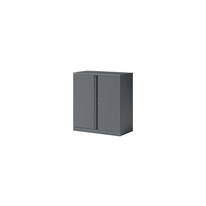 Armadio con ante a battente ESSENTIALS, 1 ripiano, 2 file di raccoglitori, grigio antracite. Fornitura = montato. Larghezza = 914 mm. Altezza = 1000 mm. Profondità = 470 mm. Colore corpo = grigio antracite. Materiale = lamiera d'acciaio, laccata. Tipo di prodotto = armadi con ante a battente. Tipo di porta = anta a battente. Colore porta = grigio antracite. Numero ante = 2 pz. Numero ripiani = 1 pz. Materiale ripiani = lamiera d'acciaio, laccata. Colore ripiani = nero. Portata per ripiano = 55 kg. Caratteristiche = con serratura. Serratura = serratura a cilindro. Numero file raccoglitori = 2 pz. Dotazione interna = 1 ripiano. Passo di regolazione altezza ripiani = 25 mm. Angolo di apertura delle porte = 220 °. Spessore ripiani = 23 mm. Spessore del corpo = 0.70 mm. Spessore porta = 0.70 mm. L'armadio con ante a battente ESSENTIALS è sinonimo di spazio e ordine grazie ai ripiani verniciati in nero. Le ante si chiudono delicatamente grazie alle chiusure magnetiche. La serratura a