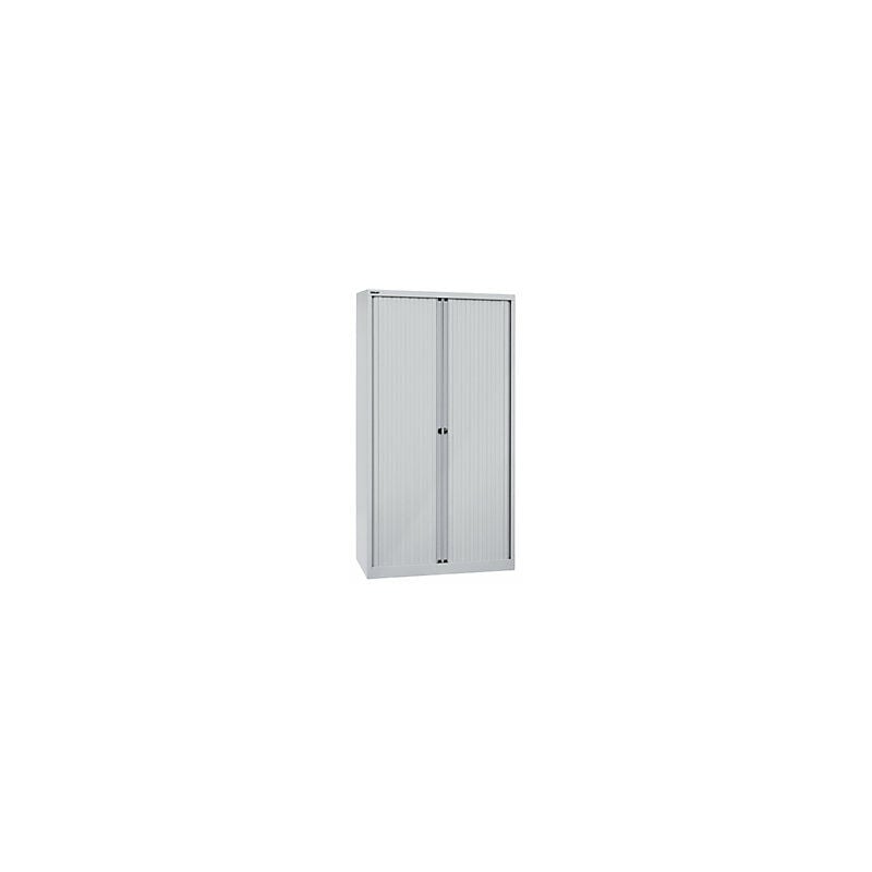 Armadio a serranda Euro, larghezza 1000 mm, 4 ripiani, grigio chiaro. Fornitura = montato. Altezza = 1980 mm. Larghezza = 1000 mm. Profondità = 430 mm. Colore corpo = grigio chiaro. Materiale corpo = lamiera d'acciaio, verniciata a polvere. Colore serranda = grigio chiaro. Caratteristiche = con serratura. Serratura = serratura a cilindro con 2 chiavi. Numero file raccoglitori = 5 pz. Materiale serranda = plastica. Dotazione interna = 4 ripiani. Numero ripiani = 4 pz. Portata per ripiano = 55 kg. Colore ripiani = nero notte. Tipo di porta = serranda orizzontale. Passo di regolazione altezza ripiani = 25 mm. Larghezza interna = 846 mm. Altezza interna = 1850 mm. Profondità interna = 395 mm. Spessore ripiani = 23 mm. Spessore del corpo = 0.8 mm. Completi di ripiani in acciaio. Con serratura. Le serrande scompaiono completamente nel corpo. Maniglia a listello nel colore della serranda. Corpo in lamiera d'acciaio spessore 0,8 mm con verniciatura a polvere strutturata e piedini ad altezza