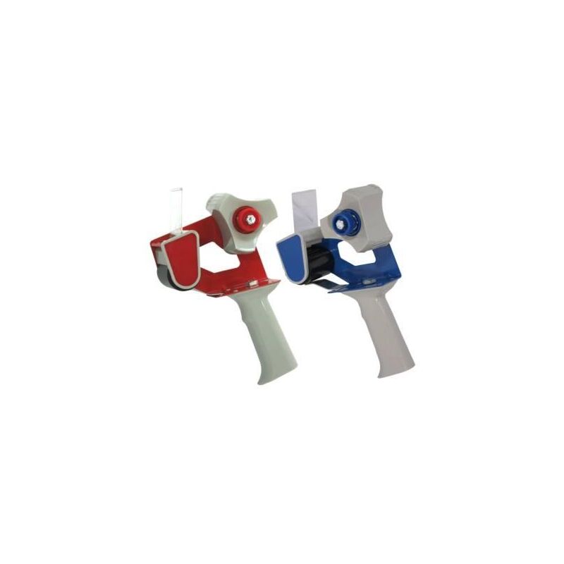 Per nastri da pacco fino a 50 mm. di larghezza. lama coperta. regolatore di tensione.