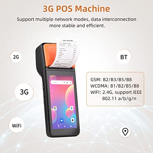 Bisofice Stampante per ricevute POS portatile 3G Android 8.1 Scanner di codici a barre Terminale PDA Supporto con touchscreen da 5,0 pollici Stampa di etichette termiche - Con funzione NFC
