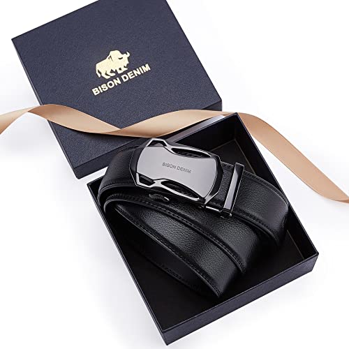 BISON DENIM Cintura da uomo, Cintura in pelle automatica Cintura da lavoro da uomo Vita regolabile, Confezione regalo da 35 mm(115, N71287-Nero)