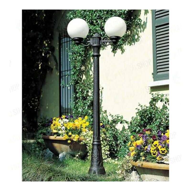 Globo E27 in stile classico, realizzata in resina antiurto, stabilizzata ai raggi UV, inattaccabile da ruggine e corrosione. Idonea per il montaggio a palo. Fornita anche completa di lampadine LED E27. Classe di isolamento II, grado di protezione IP55.DIMENSIONI: .diametro: 25cm larghezza: 67cm altezza: 205cmMATERIALE: .resina (corpo), PMMA (diffusore)PESO: .23700grLAMPADA: .E27INSTALLAZIONE: .viale, giardino