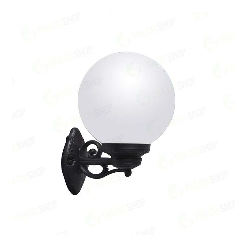 Globo Ø250 mm in polimetilmetacrilato (PMMA) completo di base classica realizzata in resina antiurto, stabilizzata ai raggi UV, inattaccabile da ruggine e corrosione. Idoneo per il montaggio a parete.Portalampade E27, Classe di isolamento II, grado di protezione IP55.DIMENSIONI: .larghezza: 300mm diametro: 250mm altezza: 360mmMATERIALE: .resina (corpo), PMMA (diffusore)PESO: .900grLAMPADA: .E27 (non inclusa)INSTALLAZIONE: .parete