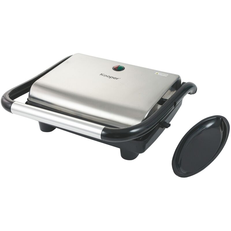 Potenza: 1.600W - 220-240V - 50/60 Hz. Copertura in acciaio con apertura basculante a doppia piastra grill, antiaderente. Spazio di cottura 30 x 25 cm. Vassoio di gocciolamento. Impugnatura termoisolante. Gancio di blocco per posizionamento verticale. Indicatore luminoso di funzionamento. Indicatore luminoso di raggiungimento temperatura. Lunghezza cavo: 120 cm. Piedini antiscivolo. Dimensioni 32 x 36 x h 12 cm.