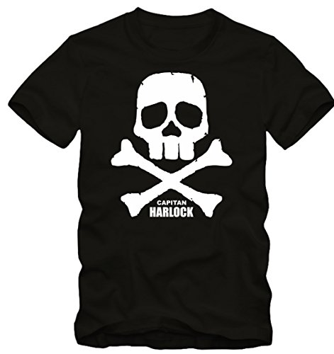 Bisura T-Shirt Capitan Harlock Anni 80 (XL Uomo, Nero)