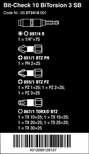 Wera, Bit-Check 10 BiTorsion 3 SB, 10 pezzi