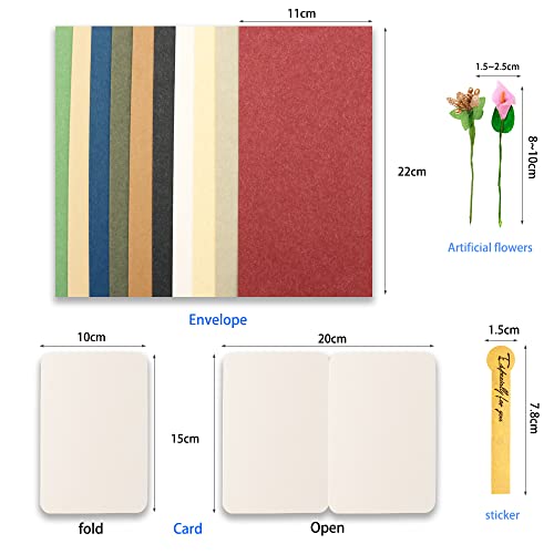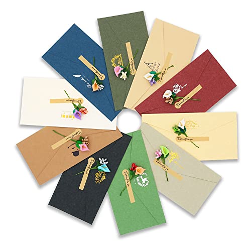 BITEYI Buste di Carta Kraft Vintage da 10 pezzi con Biglietti di Auguri Fiori Secchi Fatti a Mano e Adesivi,Cartoline per Inviti Festa di Compleanno,Matrimonio,Festa di Natale (Multicolore)