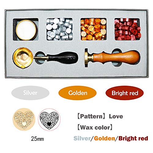 BITEYI Timbri di Cera set,Timbro Ceralacca set con Perline di Ceralacca,Sigillo in Ottone,Cera Cucchiaio,Cofanetto Regalo (Amore)