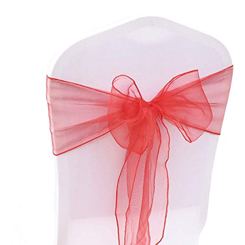 Bitfly 100pcs Organza Poltrona Fiocchi, fiocchi Sash Fascia più ampia Fuller fiocchi per matrimoni feste di compleanno decorazione Red