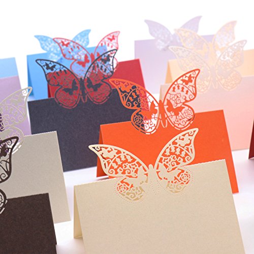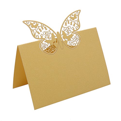BITFLY - 100 segnaposti da tavolo, con supporto a forma di farfalla, per scrivere nomi degli invitati e numero del tavolo, decorazione per matrimoni, compleanni, feste e altre occasioni Gold