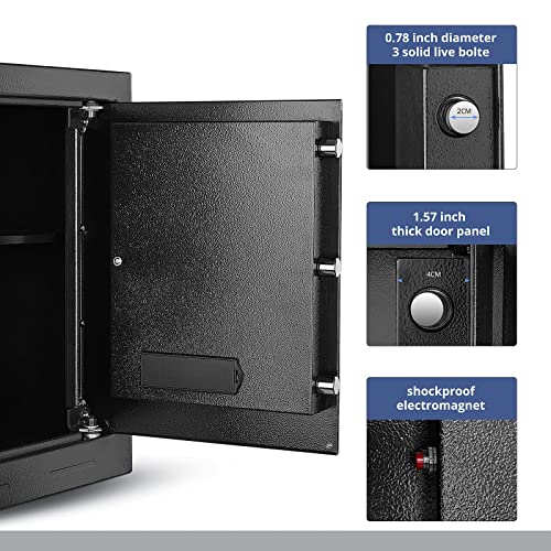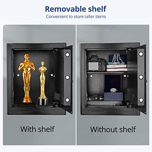 【SISTEMA DI ALLARME E 43L GRANDE CAPACITÀ】La cassaforte da armadio suona per 60 secondi dopo aver inserito per tre volte la password sbagliata o dopo un impatto violento. È possibile inserire la password corretta per interrompere l'allarme. I ripiani rimovibili aiutano a organizzare gli oggetti importanti, mentre l'ampio interno consente di riporre quasi tutti gli oggetti di valore, computer portatili, gioielli, documenti, contanti, ecc.