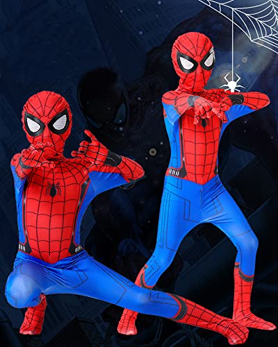 BITOWO Costume da Spider per bambini con accessori per cosplay Miles Morales Costume per bambini da 3 a 4 anni, per bambini da 98 a 110 anni, per bambini e ragazzi (110)