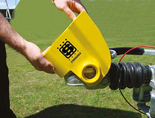Il robusto involucro in acciaio giallo con caratteristiche anti-sega copre i bulloni di fissaggio del gancio per proteggerlo dal furto Sistema di bloccaggio brevettato ad alta sicurezza Le serrature ad alta sicurezza hanno migliaia di possibili combinazioni di tasti e sono fornite con 3 chiavi, più un tag di identità chiave