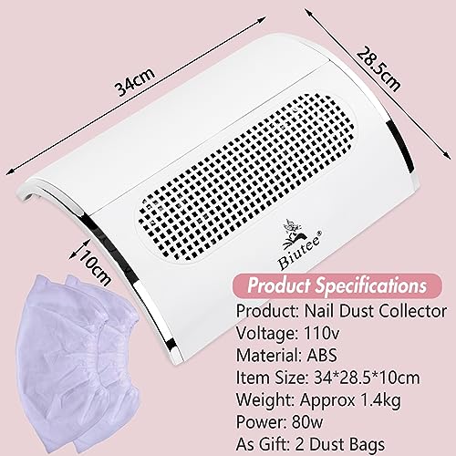Biutee, aspiratore da tavolo per la ricostruzione unghie, asciugatore per gel UV, di colore bianco