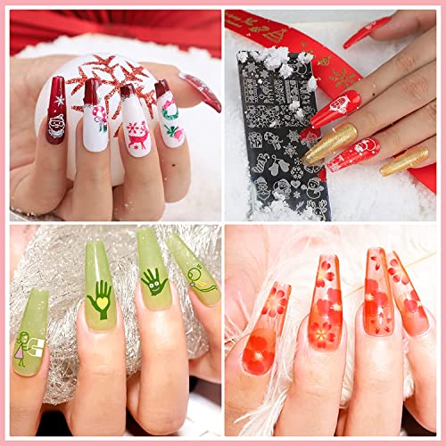 Elenco del kit Nail Stamper: 10Pcs Stamping Nail Plates+1 Pcs Clear Nail Stamper+1 Replace Stamper Head + Scraper + Gift Box. Set completo per le vostre feste e la vita quotidiana.
