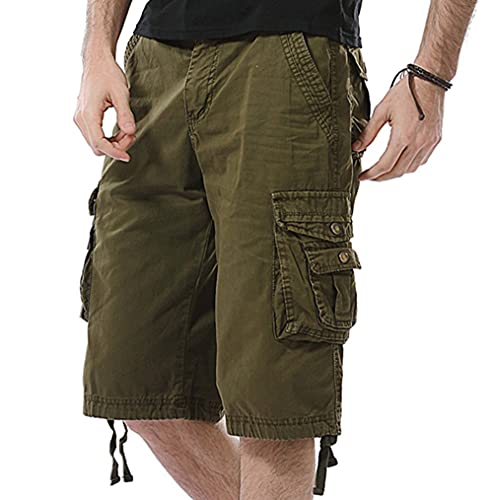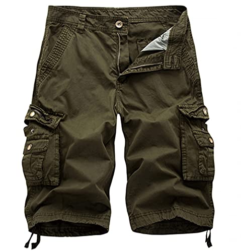 Biutimarden Pantaloncini Cargo da Uomo, Estivi Casual da Palestra in Cotone Resistente, con Tasche con Cerniera, Abbigliamento da Lavoro (Army Green, XXL)