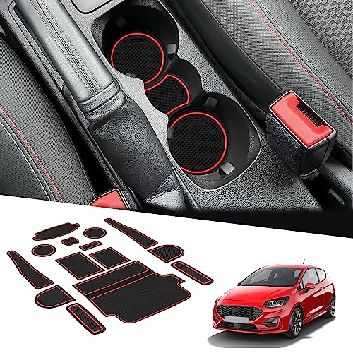 BIXUAN Compatibile con Ford Fiesta MK8 2017 - 2023, tappetini antiscivolo per console centrale, bracciolo, tappetini in gomma, supporto per bevande, 14 cuciture antiscivolo per porta