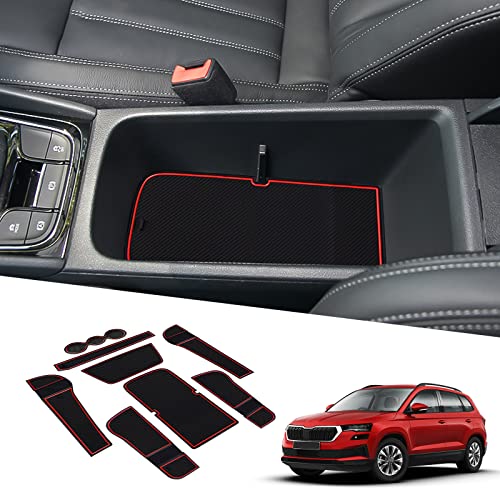 BIXUAN Compatibile con Skoda Karoq 2018 - 2022, tappetini antiscivolo per console centrale, braccioli, tappetini in gomma, supporto per bevande, antiscivolo, cuciture per porta