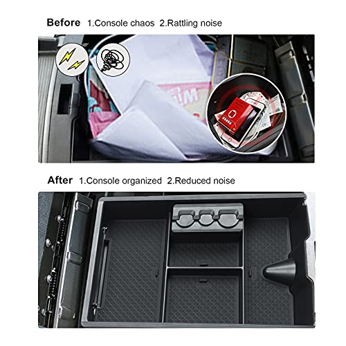 ★【Modelli applicabili】 Compatibile con Dodge RAM 1500 2500HD 3500HD 2009-2018+ Vano Portaoggetti per Bracciolo Secondario,Scatola Organizer da Braccioli con Tappetino Antiscivolo, Immagazzinaggio per auto accessori Console Centrale