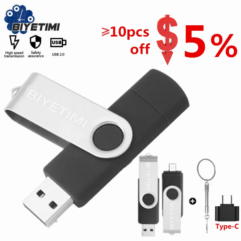 Biyetimi Multifunctional USB stick 64gb otg 2.0 pendrive 128gb Flash Drive 256gb 16gb cle usb 128G Pen Drive for phone