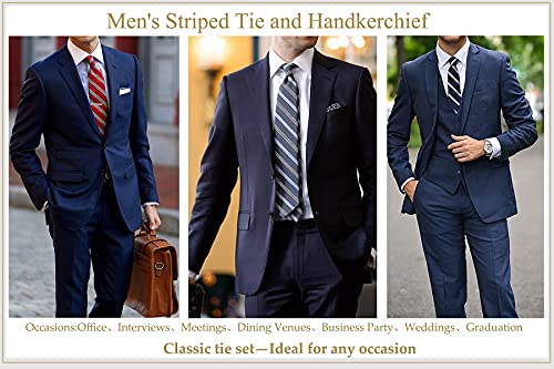 BIYINI Cravatta Fazzoletto Uomo Cravatta a Righe Set Seta Rosso Cravatte Uomo Righe Fazzoletto da Taschino Fantasia Elegante Cravatta e Fazzoletto