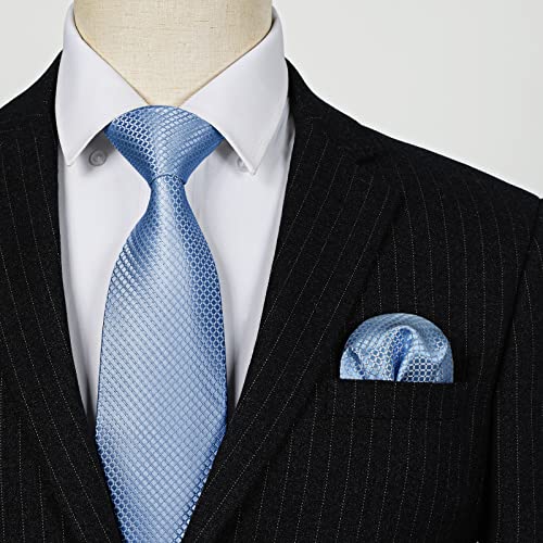 BIYINI Cravatta Uomo a Quadri Scozzese e Fazzoletto Elegante Cravatta Set di Cravatte Classiche per il Matrimonio Festa Lavoro Laurea (Blu)