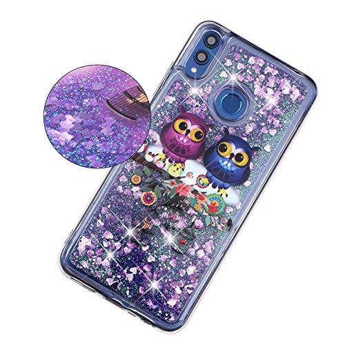 BIZHIKE Cover per Huawei Honor8x, Glitter Bling Liquido Custodia Sparkly Luccichio Pendenza TPU Silicone Protettivo Morbido Brillantini Quicksand Case - Gufo