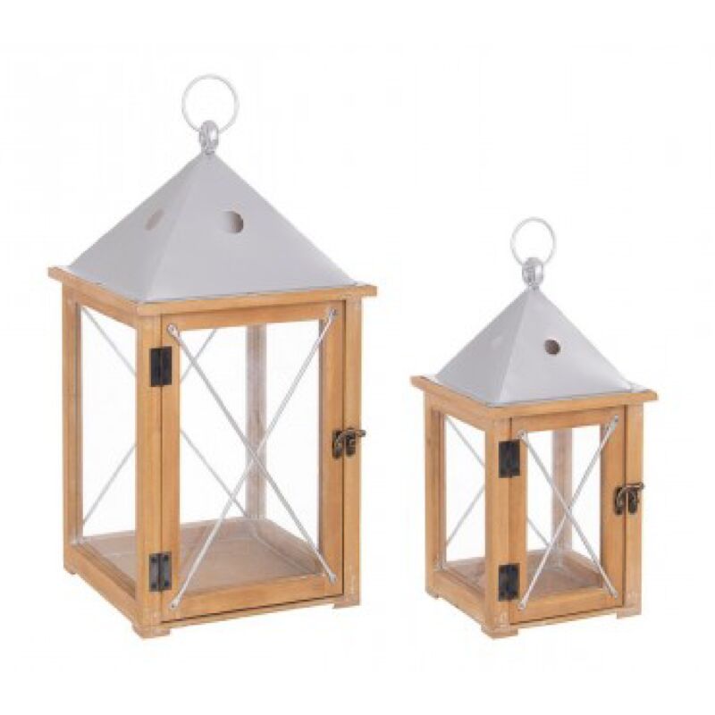 Questo set di lanterne Beatific offre un'elegante combinazione di acciaio verniciato a polvere, legno di abete, compensato e vetro, creando una splendida illuminazione esterna. Con due diverse dimensioni, 18x18x34h e 24x24x46h, queste lanterne offrono un equilibrio perfetto tra stile e funzionalità per arricchire gli spazi esterni. La struttura principale delle lanterne è realizzata in acciaio verniciato a polvere, garantendo una durata eccezionale e una resistenza agli agenti atmosferici. Il legno di abete aggiunge un tocco di calore e naturalezza al design, mentre il vetro trasparente permette alla luce di filtrare in modo uniforme, creando un'atmosfera luminosa e accogliente. Questo set di lanterne Beatific è ideale per illuminare il tuo patio, giardino o terrazza con stile e praticità. Con il loro design raffinato e la loro costruzione di qualità, queste lanterne aggiungono un tocco di eleganza e calore a qualsiasi ambiente esterno. Caratteristiche: Materiali: Acciaio