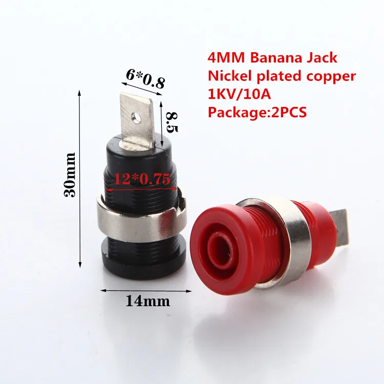 2PCS BJ008 4MM Banana Jack Female Plug M4 Banana Socket/Jack Wiring Terminal Red/Black Nickel plated copper 1KV/10A