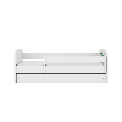 Bjird Letto per bambini singolo - con sponda anticaduta - con barriera - con Materasso cassettone estraibile e telaio a doghe per bambini e bambine - piccolo dino - 80 x 180 cm con materasso