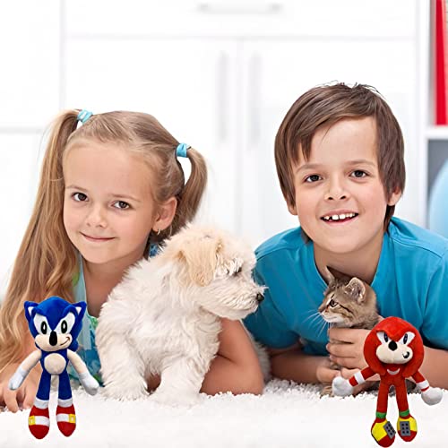BJPERFMS Sonic Peluche 2 Pezzi Sonic Giocattolo Sonic Personaggi Pupazzo Sonic Blu Rosso Sonic Peluche Bambola Collezione Bambola Carina Giocattolo Educativo per Bambini Adulti e Fans