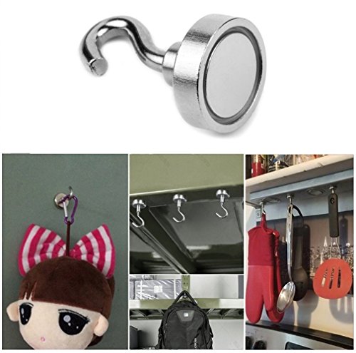 Bkinsety Gancio magnetico in neodimio 10 pezzo magnete con gancio ultra forte al neodimio zincato 22 Chilogrammo Diametro 25 mm