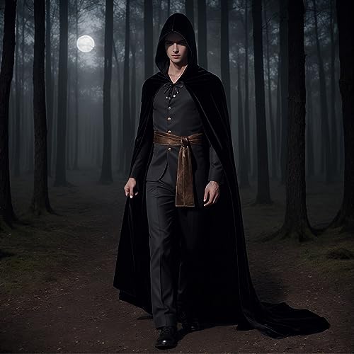 Mantello Nero Con Cappuccio Di Alta Qualtita: Il lungo mantello con cappuccio di Carnevale è molto adatto per travestirsi da vampiro, zombi, mago, strega o mago. Che si tratti di feste a tema horror, giochi di ruolo, festival teatrali o carnevali, Halloween e vari balli in maschera, questo può essere un ottimo vestito per te.