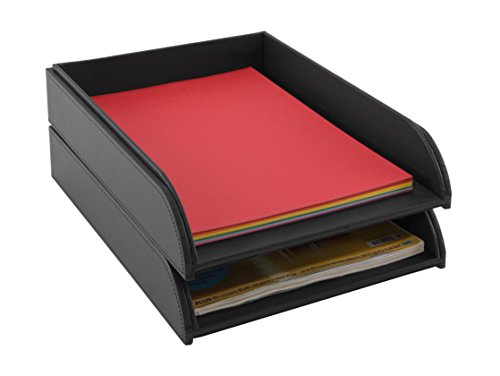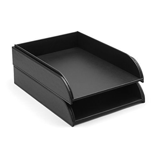 Deluxe, black faux leather stackable Letter Tray - no need for risers