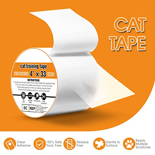 SICURO E TRASPARENTE: il nastro del treno per gatti è realizzato in vinile, sicuro al 100% e non tossico per gli animali domestici. Il nastro trasparente antigraffio per gatti non influisce sull'arredamento della stanza.