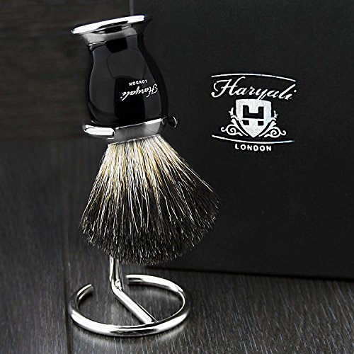 Black Badger Hair Herren pennello da barba con Black & Metal Maniglia e supporto cromo