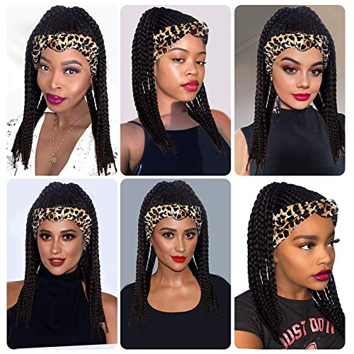 Black Braided Headband Wigs for Women Box Braid Wig with Headband Attached Braid Headband Wig Wrap Wig 2 in 1 Braided Wigs for Women Head Wrap Wig with Braided Wig