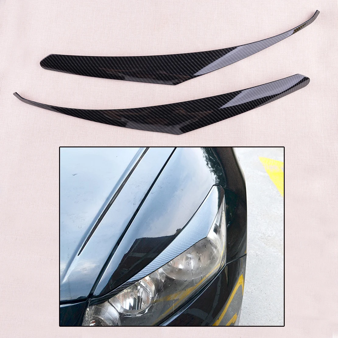 ABS Black Carbon Fiber Look Headlight Lamp Eyebrow Molding Trim Car fit for Honda Accord 2008 2009 2010 2011 2012