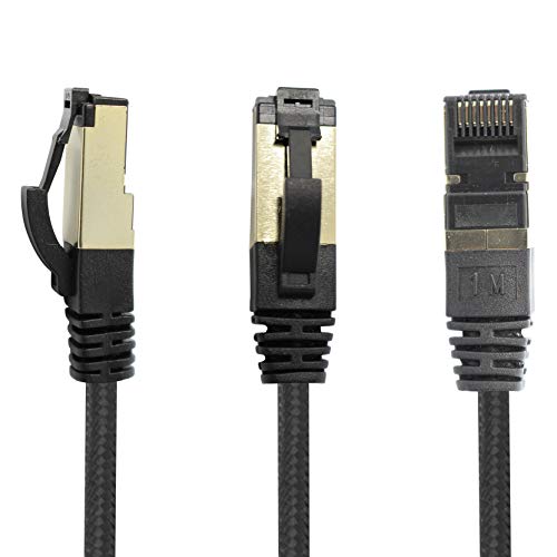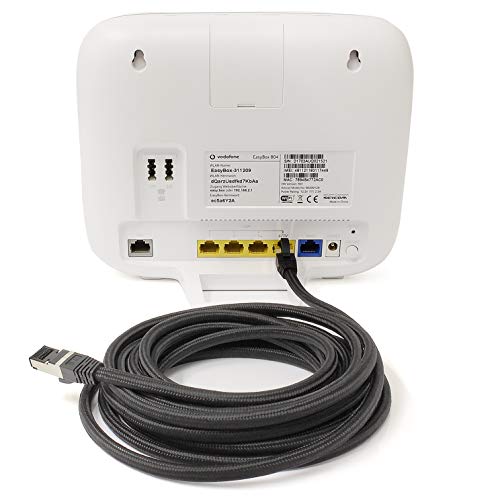 Black Cotton Cat 6a, cavo patch Cat 6a, nero, 1 cavo di rete in tessuto di cotone, Cat 6, cavo patch RJ 45, cavo Ethernet LAN, 500 MHz, 10 Gb S, 1 x 5 m