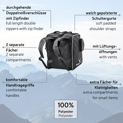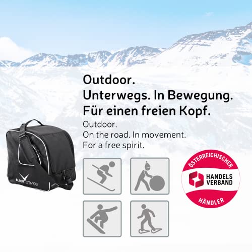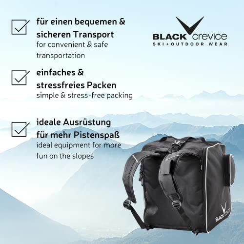 Black Crevice Borsa per scarponi da sci e casco, tasca per scarponi da snowboard, scarponi da sci e caschi, tasca regolabile con ampio scomparto principale e scomparto inferiore con chiusura lampo, dimensioni: 42 x 47 x 30 cm