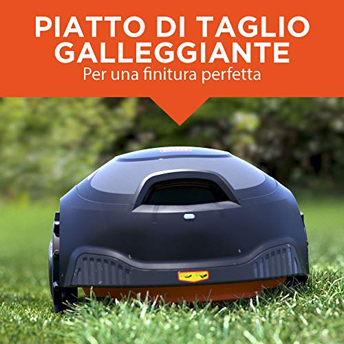 in dotazione pulitore del piatto di taglio, 200 mt di cavo perimetrale, 250 picchetti e stazione di ricarica coperta;