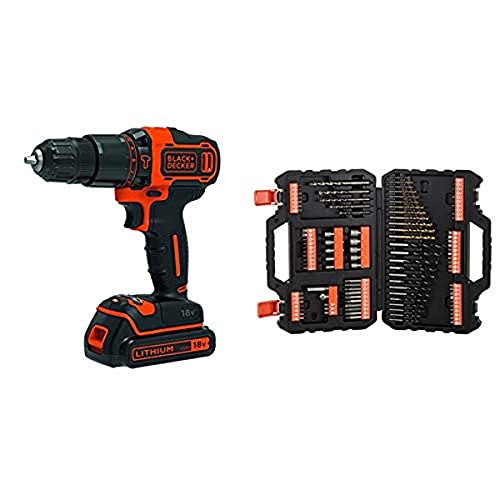 BLACK+DECKER BDCHD18-QW Trapano Avvitatore a Percussione, 18 V al Litio, 1.5 Ah + A7200-XJ Titanium Set per Forare ed Avvitare, 109 Pezzi